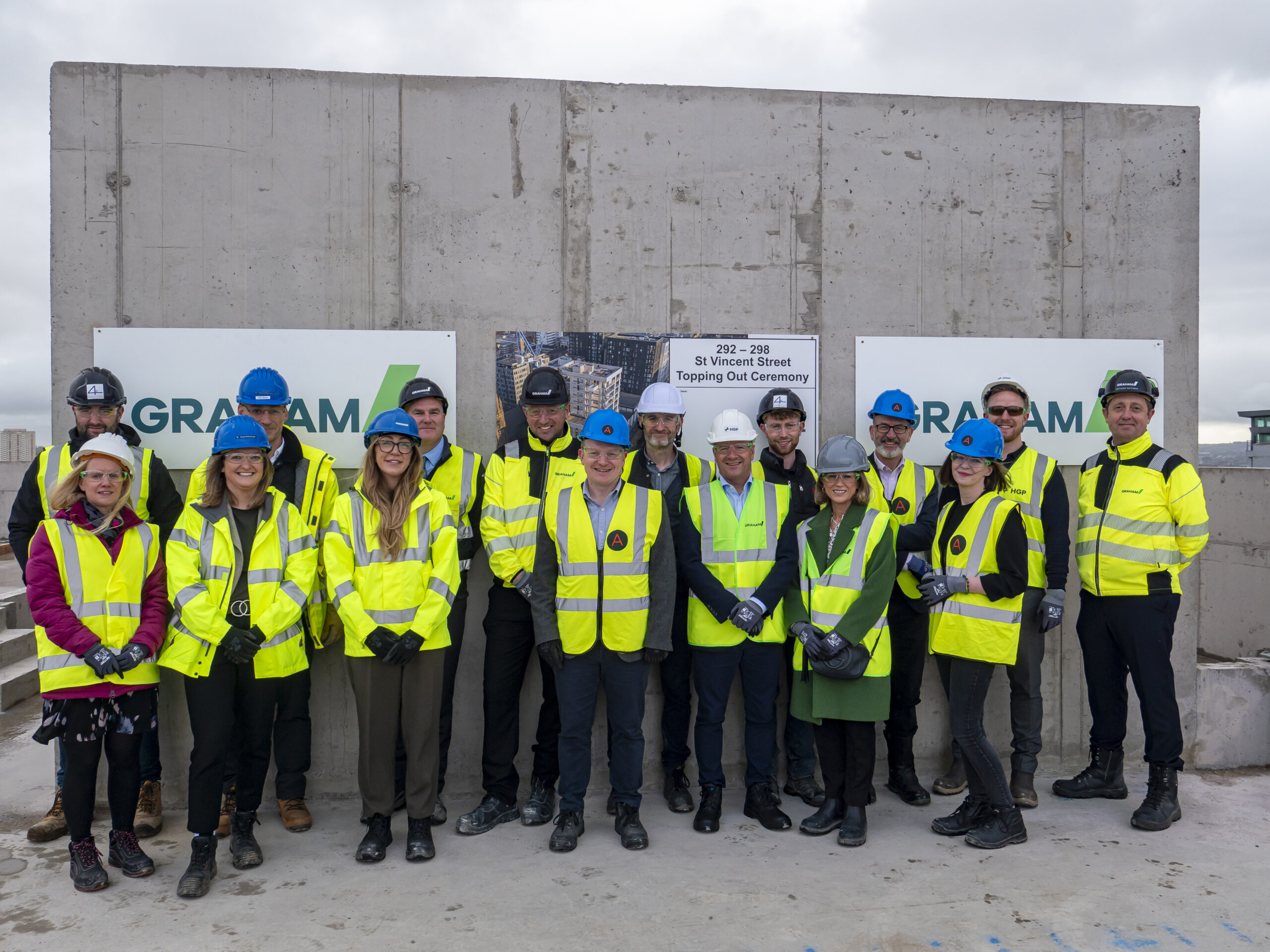 A £38 million purpose-built student accommodation scheme at 292 St Vincent Street, Glasgow, has officially topped out, marking a major milestone in the delivery of 321 state-of-the-art studio apartments in the city centre.