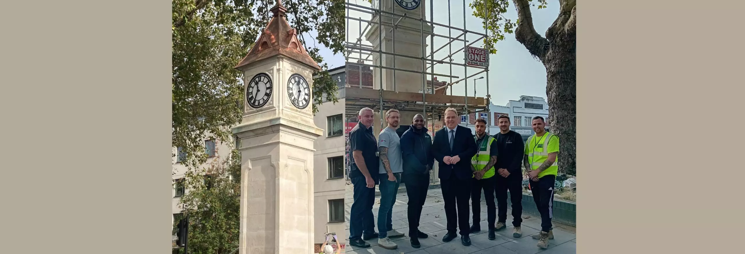 Thornton Heath’s historical clocktower has been restored, after it was badly damaged in a blaze in September last year.