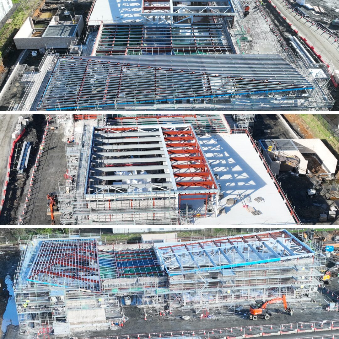 Over the past twelve months, momentum has continued to build. The swimming pool tank has been excavated and constructed, a significant structural milestone. In December 2025, the project achieved another key marker with the completion of the Leisure Centre steelwork, allowing internal and external blockwork and roofing to commence. Beyond the main building, wider site works have progressed in parallel, including pitch perimeter walking paths and drainage.