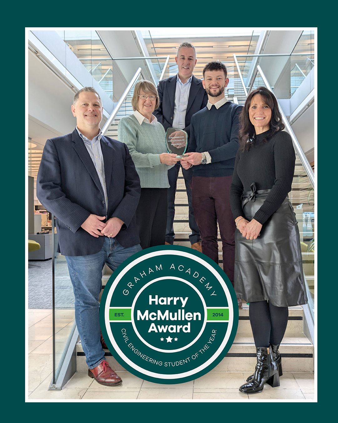Billy said: “It’s a true honour to receive the Harry McMullen Award. This achievement wouldn’t have been possible without the support and expertise of everyone at GRAHAM. I’m especially grateful to the teams on the Birkenhead FHSF and Aurs Road Realignment projects your time, guidance, and teamwork have been invaluable in my growth as an engineer. This year has only strengthened my passion for civil engineering, and I’m excited for the future opportunities with GRAHAM.”