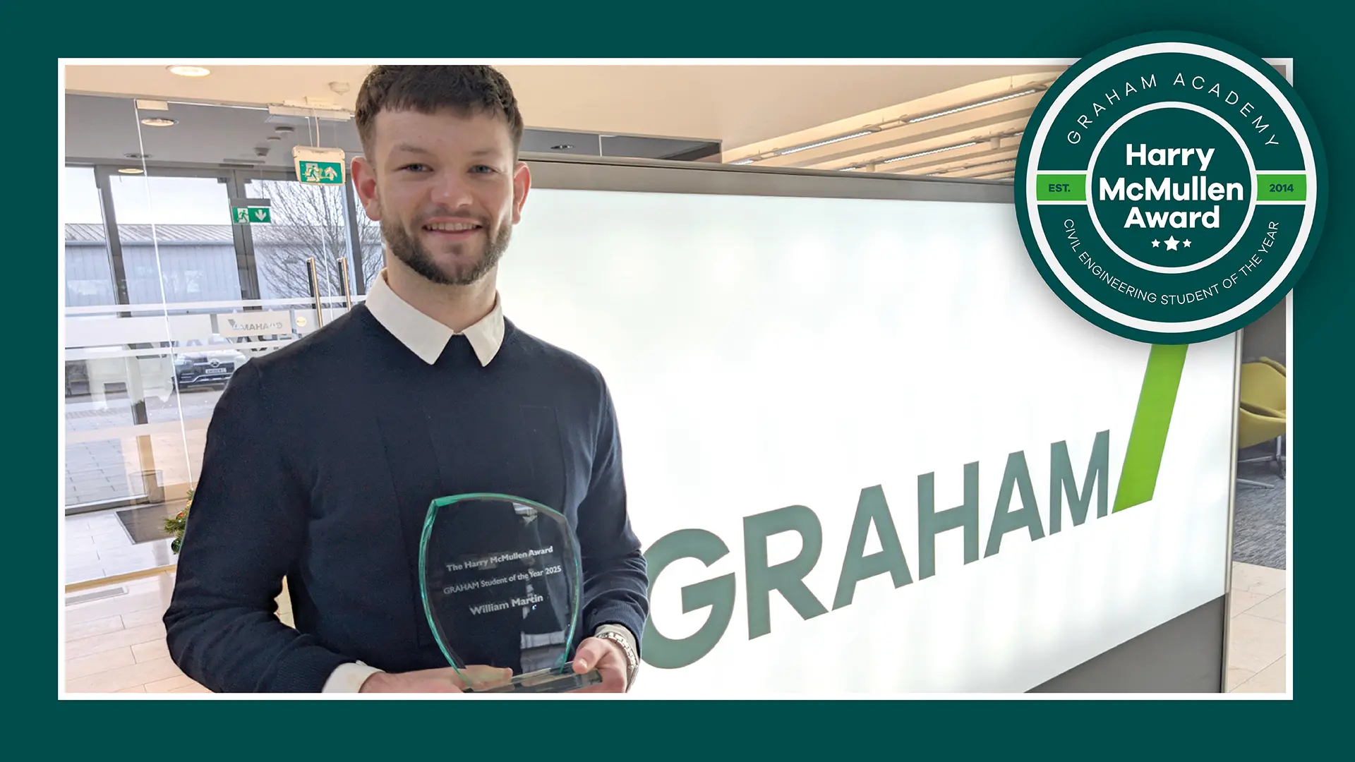 Billy said: “It’s a true honour to receive the Harry McMullen Award. This achievement wouldn’t have been possible without the support and expertise of everyone at GRAHAM. I’m especially grateful to the teams on the Birkenhead FHSF and Aurs Road Realignment projects your time, guidance, and teamwork have been invaluable in my growth as an engineer. This year has only strengthened my passion for civil engineering, and I’m excited for the future opportunities with GRAHAM.”