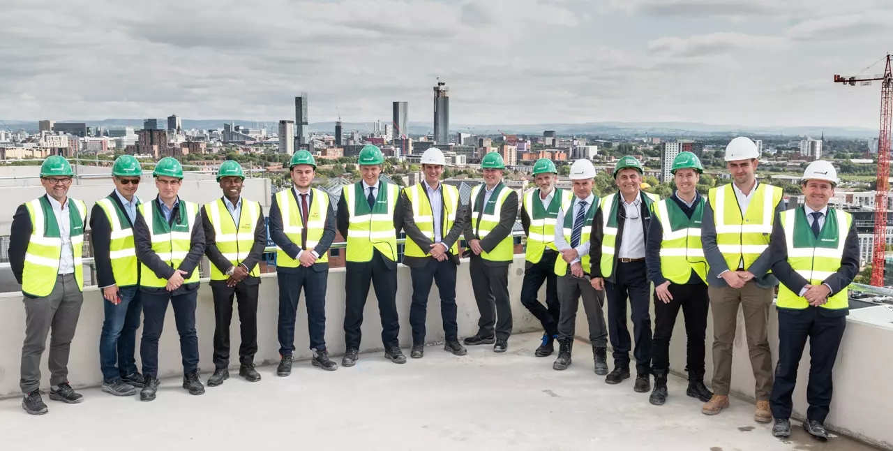 We reached the highest point of construction at Erie Basin and celebrated the milestone with Glenbrook, the privately owned property development and investment company behind the project, funding partner Moorfield Group, Salford Council, architect Sheppard Robson and cost consultant Abacus.