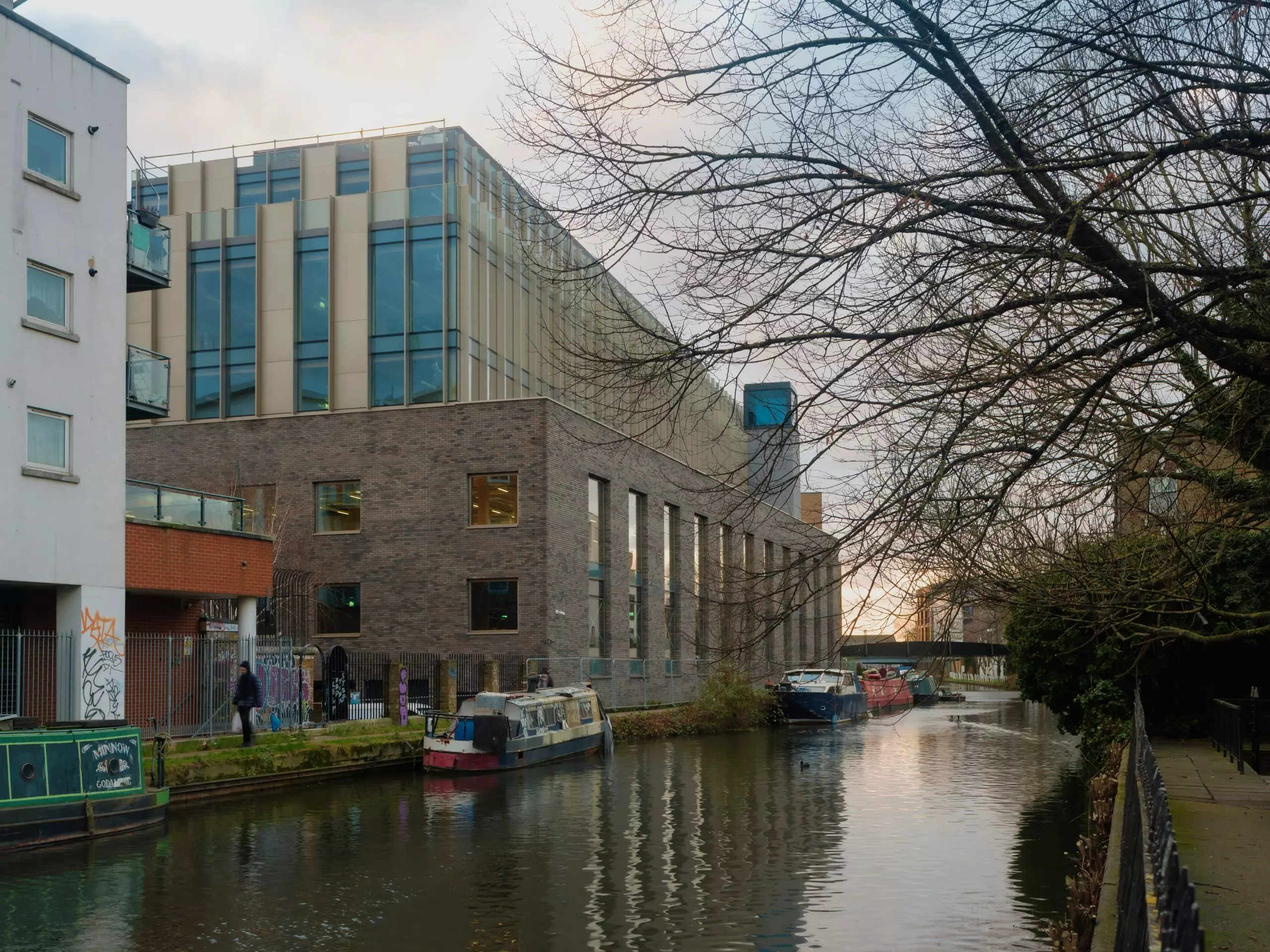 Located next to the Grand Union Canal in west London, the building’s architecture seamlessly integrates into the historic and social fabric of the external environment through new brick and glazed façades added to all elevations, referencing both the building’s rich, industrial heritage and cultural significance.