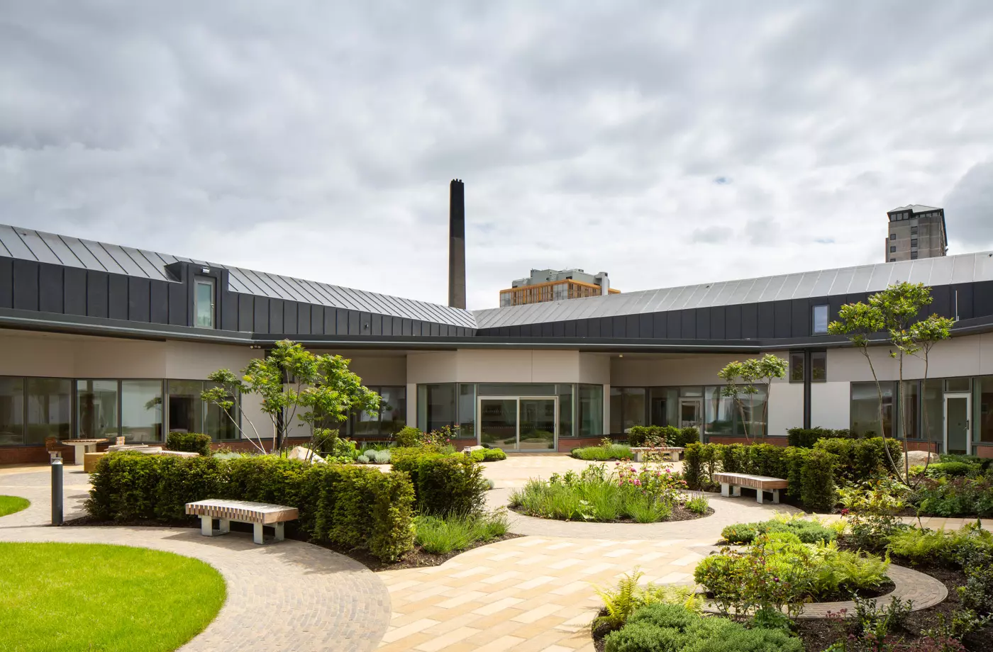 Individual rooms also benefit from having their own pitched roofs, creating a sense of home, and the entire building is serviced by a first-floor services zone so that building maintenance can be completely separated from clinical areas.